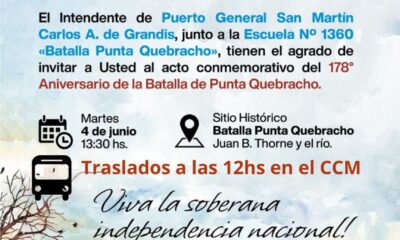 Al conmemorarse, el próximo martes 4 de junio, un nuevo aniversario de la gesta histórica librada en nuestra ciudad. Los invitamos a participar del acto oficial...