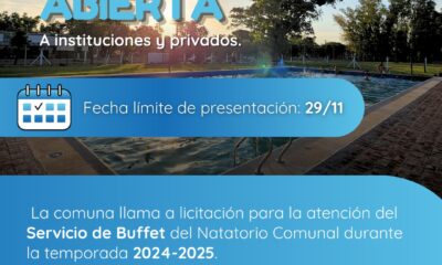 La comuna de Luis Palacios llama a licitación para la atención del Buffet del Natatorio Comunal. Para ser evaluada la oferta será necesario presentar una nota...
