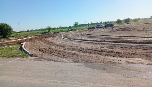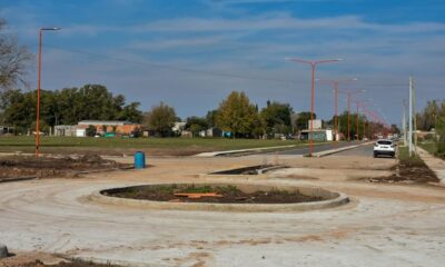 Se realizan trabajos de la construcción de una rotonda en la intersección de Avenida Belgrano y Moreno.