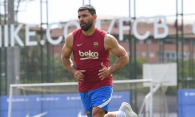En el tramo final de su recuperación, el Kun disputó su primera media hora en el Barsa en un partido de práctica ante el Cornellà. Mirá...