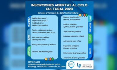 A partir del día lunes 10 estará abierta la inscripción a las actividades culturales 2023