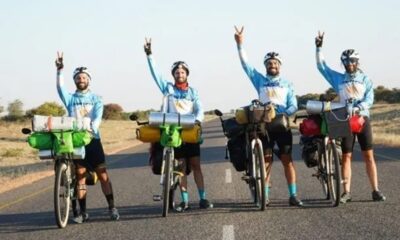 Los tres argentinos partieron en bicicleta desde Córdoba y llegaron a Doha para alentar a la Scaloneta.